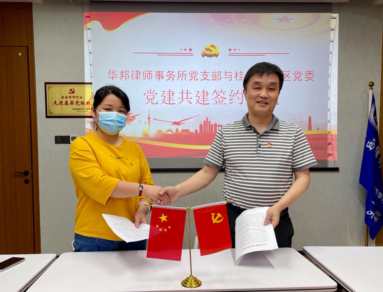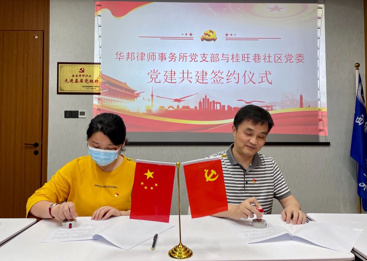 为了进一步发挥律所公共法律服务职能,2021年6月2日,中共江西华邦律师事务所支部委员会与东湖区百花洲街道桂旺巷社区党委签订了共建协议。