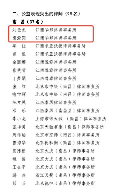 “江西律师公益集结号”再吹响!华邦律师再获表彰!
