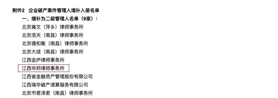 华邦动态|我所增补为江西省企业破产案件二级管理人