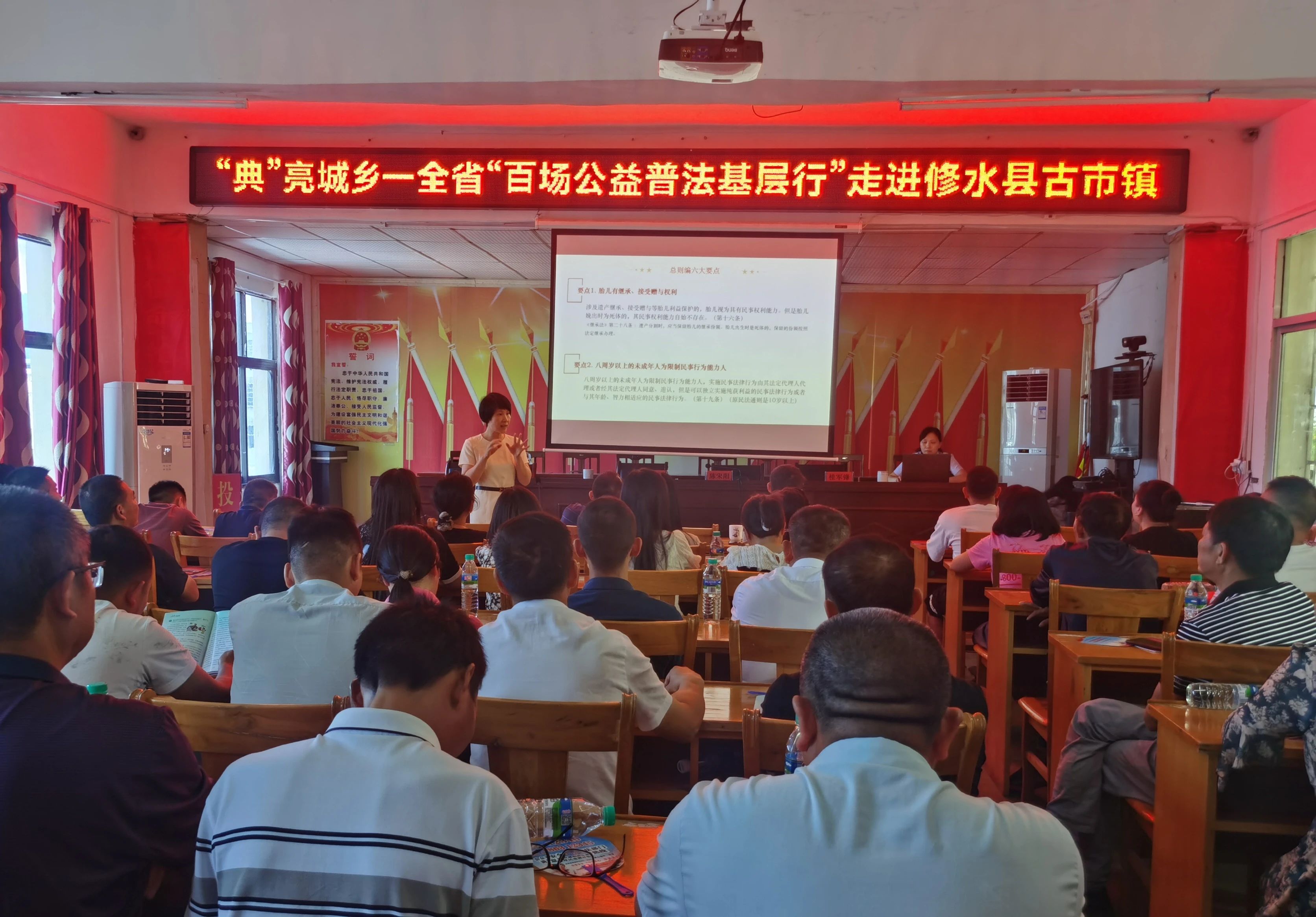 2023年6月15日,江西省“百场公益普法基层行”公益普法讲座走进修水县古市镇。修水县普法办联合古市镇政府特邀我所高级合伙人陆燕律师授课,镇领导干部、村(社区)两委“法律明白人”骨干、人民调解员等150余人参加。